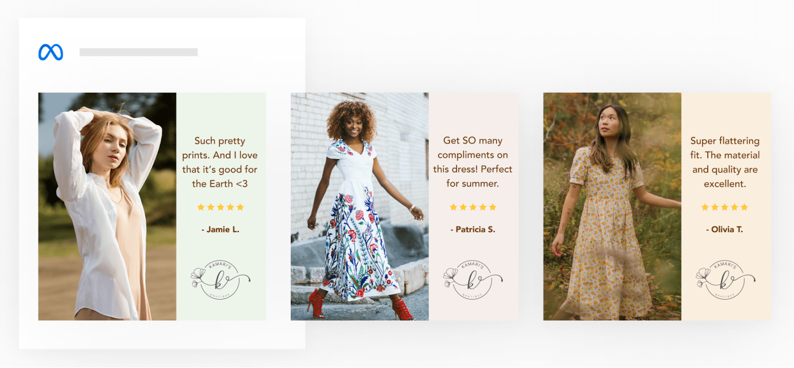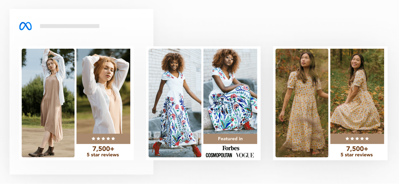 This template automatically pulled actual product reviews next to each product. This meant unique content across all the product cards. This catalog would run for a day and then switch to creative 2.