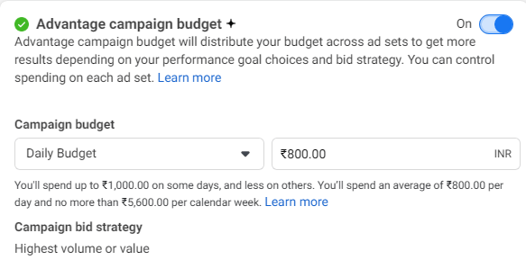 When creating your ad sets, you should keep in mind the budgets you set for your campaigns. Enabling or disabling ‘Advantage Campaign Budget’ (CBO vs. ABO) can also affect your budget distribution.
