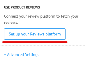 3. Find the “Use Product Reviews” section (bottom left) and click on the “Set up Reviews platform” button.