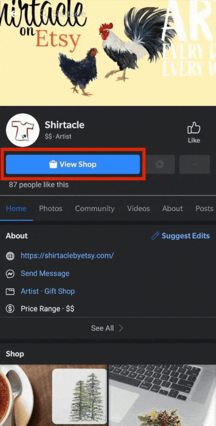 *The actual purchases will be done through your Etsy store by default – the product pages on your Shop will redirect them to your Etsy product page. Facebook allows product checkouts within the Shop interface itself but certain eligibility criteria apply. If you’re interested, read more here about checkouts.