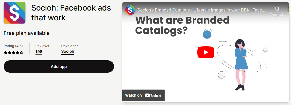 The app also offers powerful tools to design and automate your dynamic catalog ads including A/B testing ads without losing learnings, lifestyle images, automatic background removal, and more.