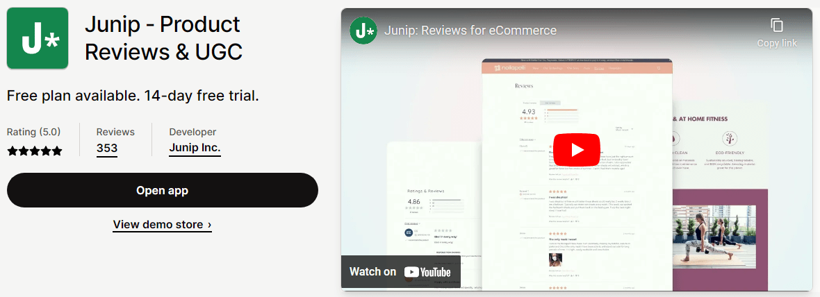 Junip provides customizable review request emails, review widgets, and analytics to gather valuable customer feedback and improve customer trust.