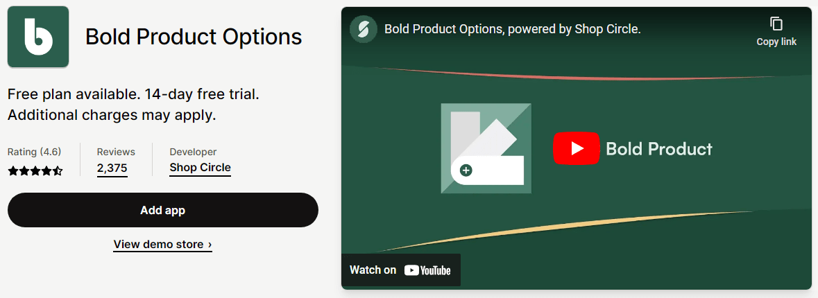 10. Bold Product Options