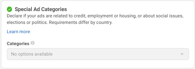 This section is only relevant if you offer credit/employment/housing, or promote social issues, elections, or politics. You can read more about it here.